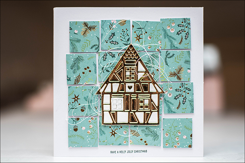 Da das Hintergrundpapier gold foliert ist, hatte ich mich dazu entschieden, beim Häuschen auch auf gold-glänzende Akzente zu setzen damit es perfekt zusammen passt....